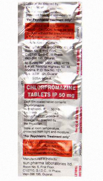 Chlorpromazine 50mg (generic chlorpromazine) 50 tablets